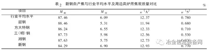 通過選擇合理渣系、加強(qiáng)管理、取消中心加焦冶煉等措施,實(shí)現(xiàn)了新鋼2 500 m3 高爐低品位、高比例燒結(jié)礦爐料結(jié)構(gòu)下的爐況長期穩(wěn)定順行。同時(shí),其技術(shù)經(jīng)濟(jì)指標(biāo)與行業(yè)同類型高爐指標(biāo)對比,在新鋼2 500 m3 高爐入爐品位低于行業(yè)平均水平0. 81%的情況下,新鋼燃料比較行業(yè)水平低35. 95 kg /t,煤比高12. 57 kg /t,綜合焦比降低38. 06 kg /t。